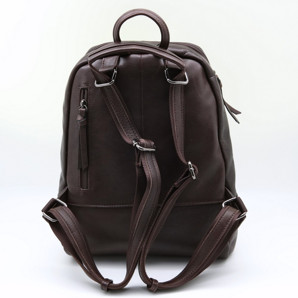 Размер 25 х 34 х 10 см. Закрывается на металлическую молнию. На передней стороне карман на молнии. Внутри одно отделение и четыре кармана- два открытых и два на молнии. На обратной стороне карман на молнии. Длина лямок регулируется, можно носить на плече как сумку. Имеет удобную ручку для ношения в руке.