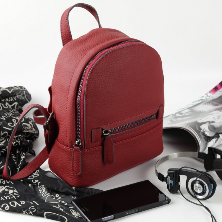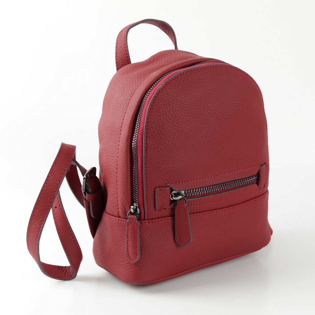 Размер 21 х 23 х 10 см. Закрывается на металлическую молнию. На передней и задней сторонах- по одному карману на молнии. Внутри одно отделение и два кармана- открытый и на молнии. Длина лямок регулируется. Имеет удобную ручку для ношения сумки в руке.