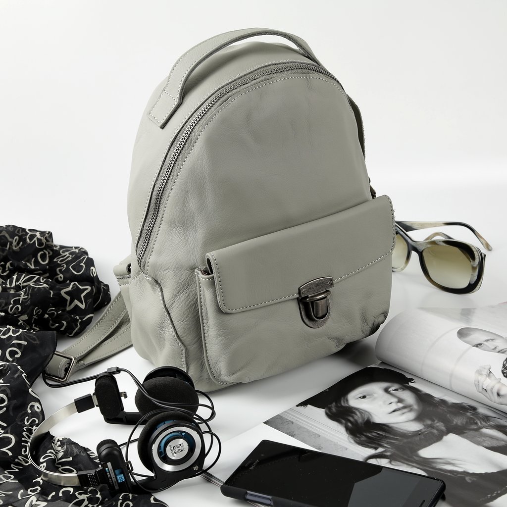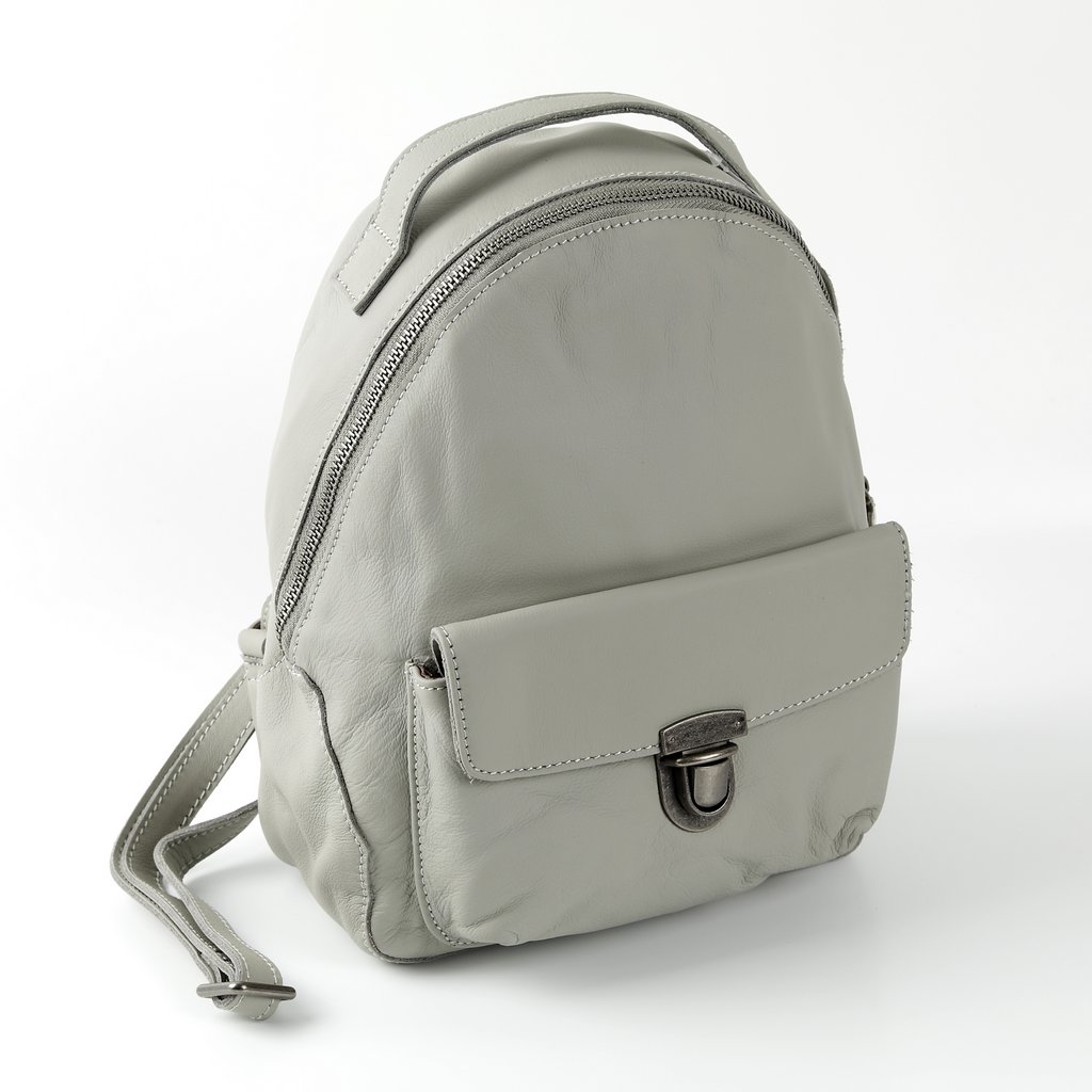 Размер 20 х 26 х 10 см. Закрывается на металлическую молнию. Внутри одно отделение и два кармана- открытый и на молнии. На передней стороне- карман на защёлке, на задней- на молнии. Длина лямок регулируется. Имеет удобную ручку для ношения сумки в руке.