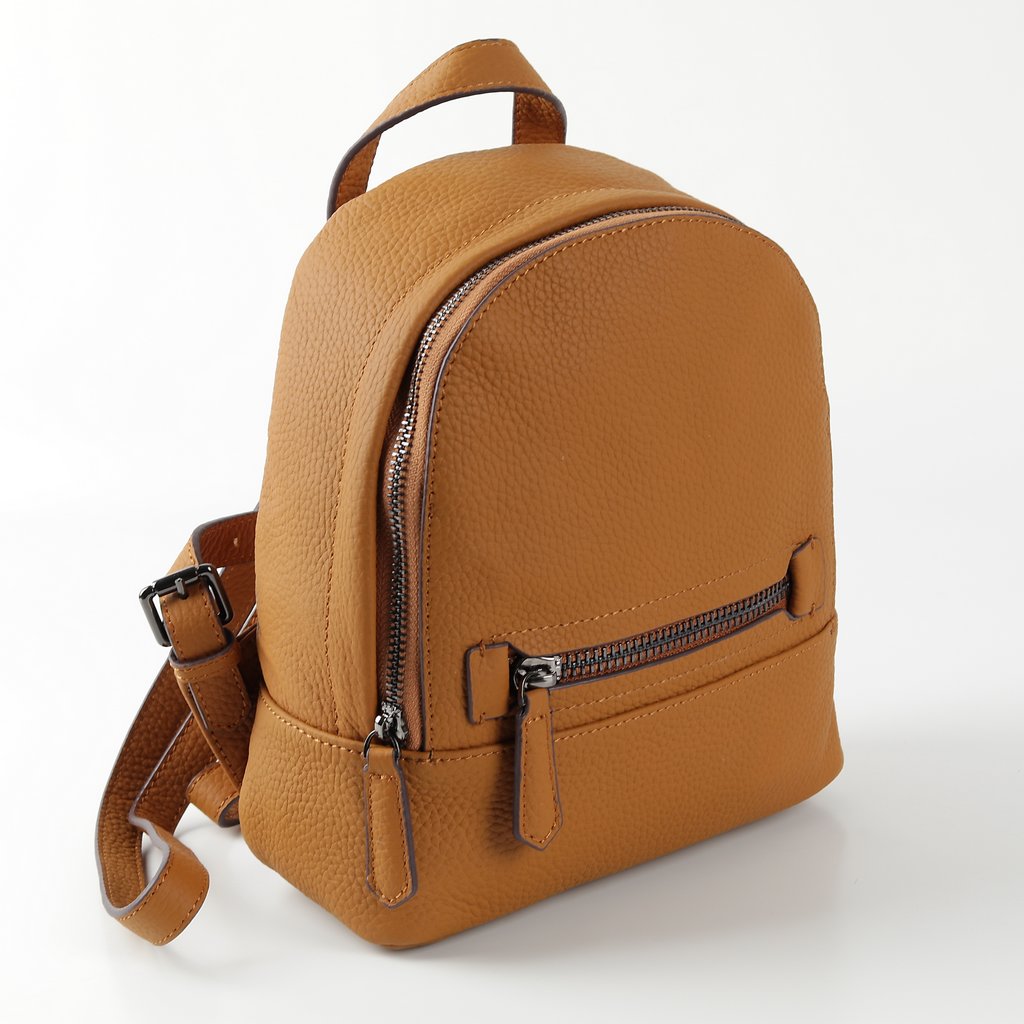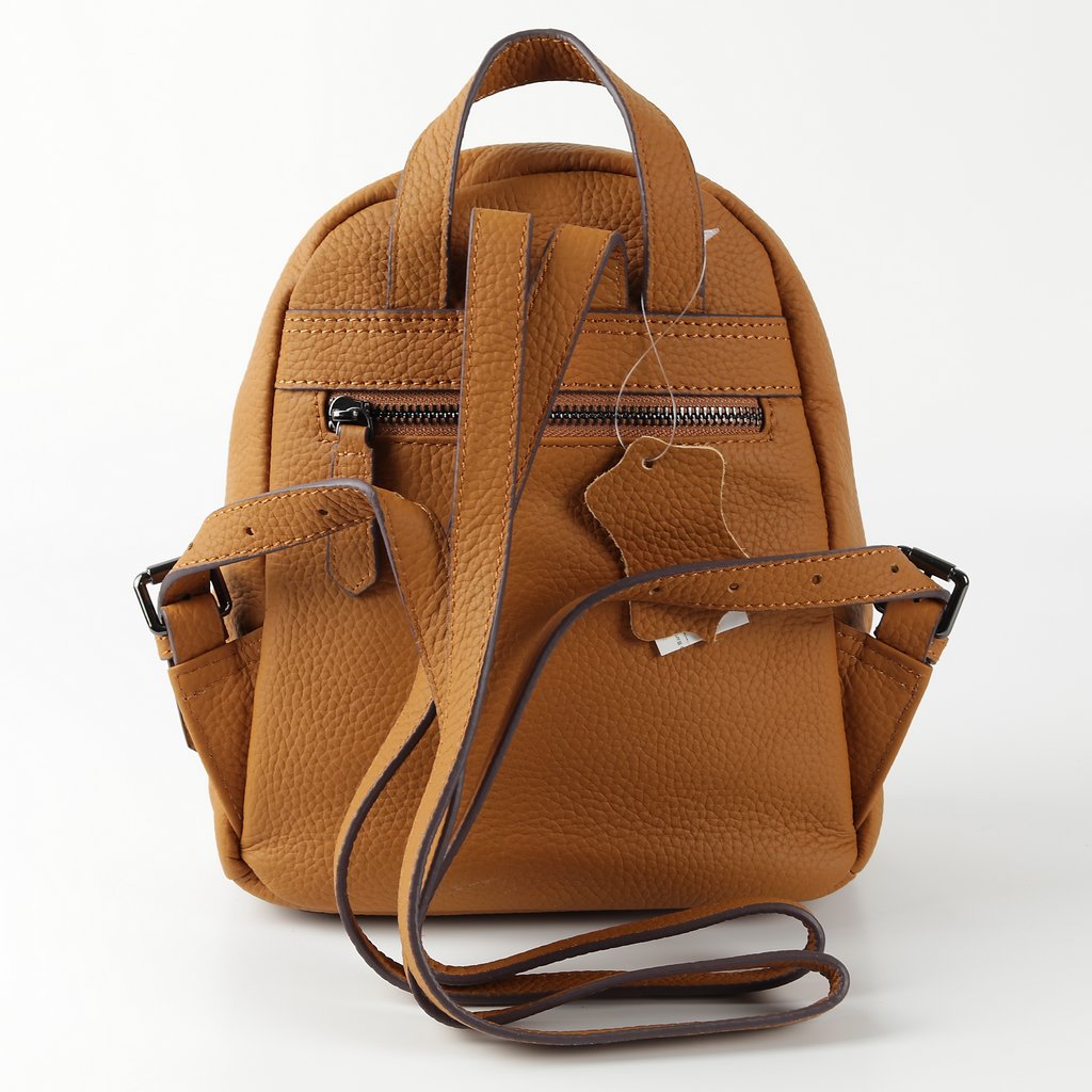 Размер 21 х 23 х 10 см. Закрывается на металлическую молнию. На передней и задней сторонах- по одному карману на молнии. Внутри одно отделение и два кармана- открытый и на молнии. Длина лямок регулируется. Имеет удобную ручку для ношения сумки в руке.