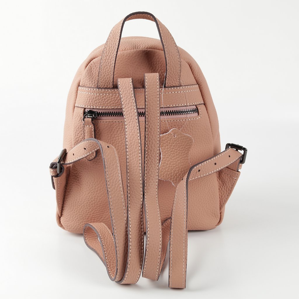 Размер 21 х 23 х 10 см. Закрывается на металлическую молнию. На передней и задней сторонах- по одному карману на молнии. Внутри одно отделение и два кармана- открытый и на молнии. Длина лямок регулируется. Имеет удобную ручку для ношения сумки в руке.