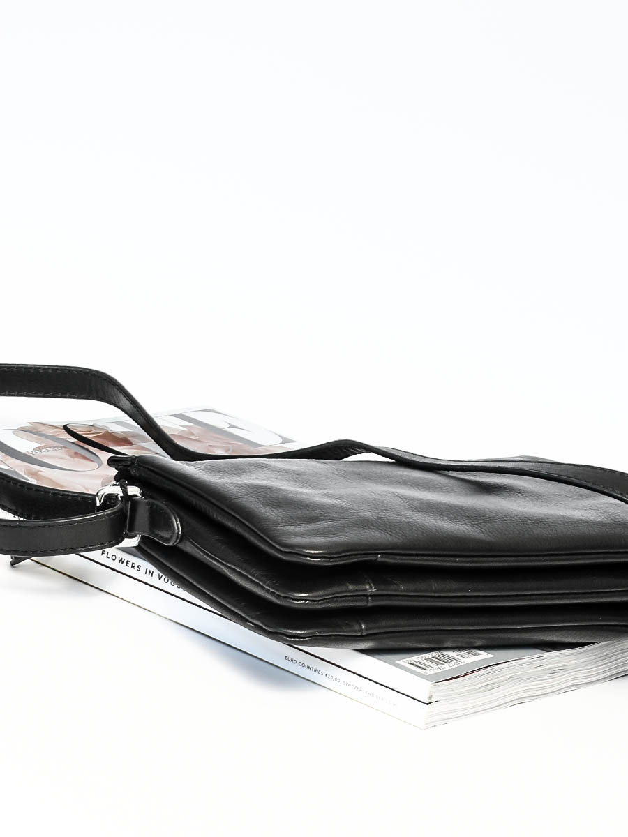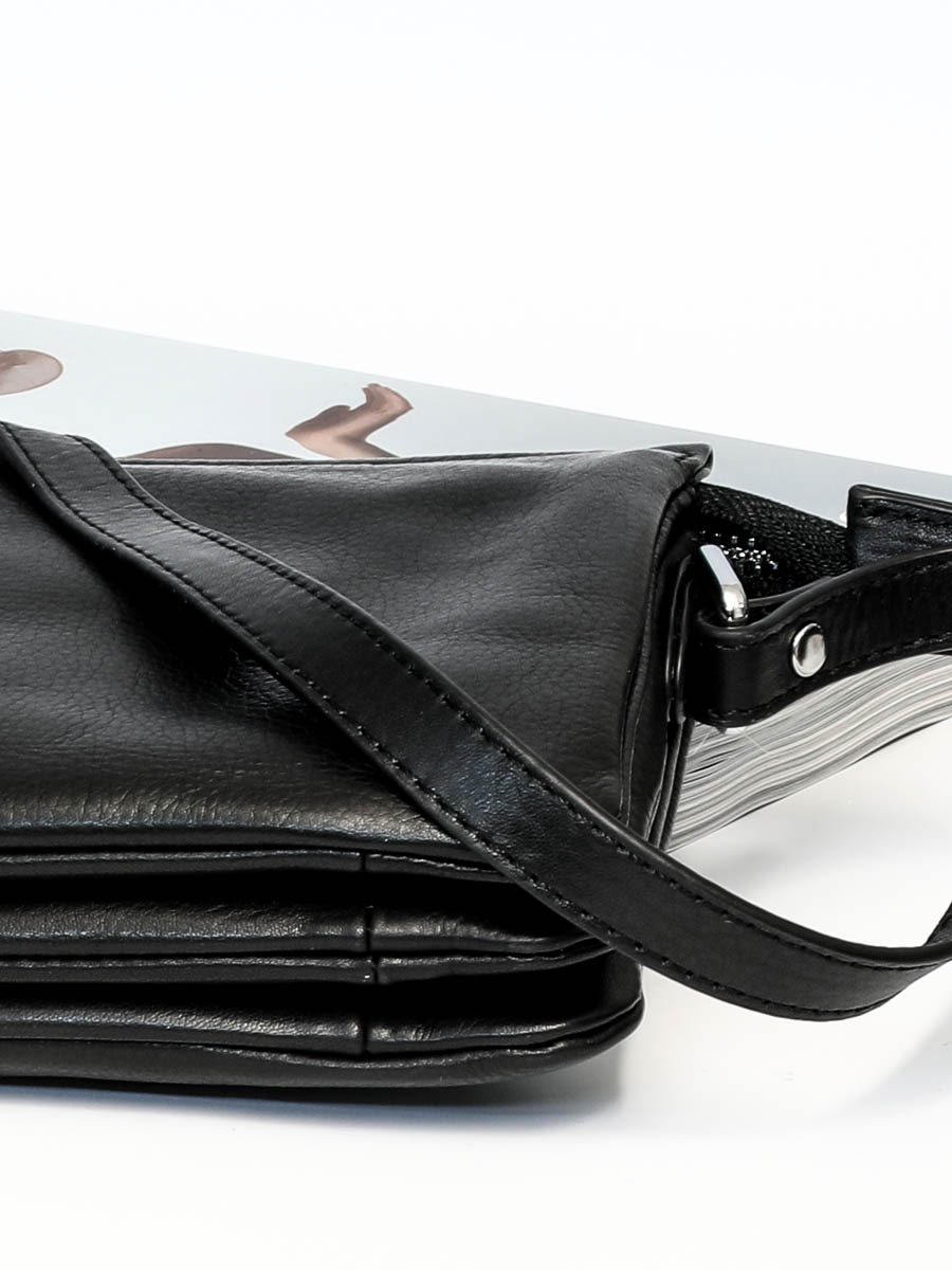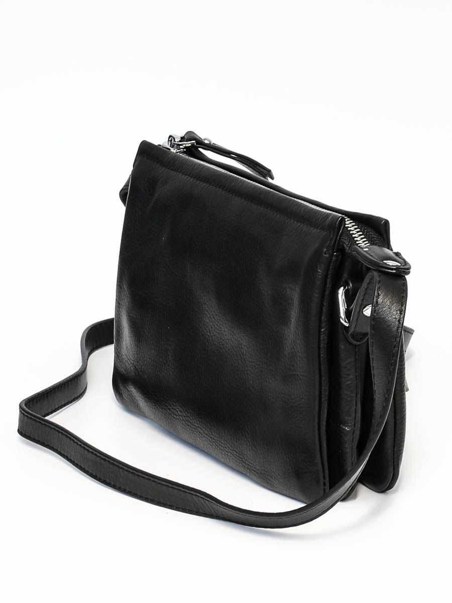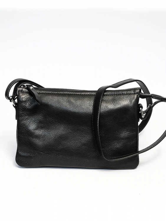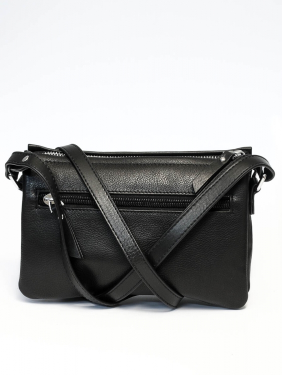 Размер 21,5 х 13,5 х 5 см. Закрывается на молнию. Внутри три отделения и карман на молнии. На обратной стороне карман на молнии. Сумка оснащена регулируемым по длине наплечным ремешком.