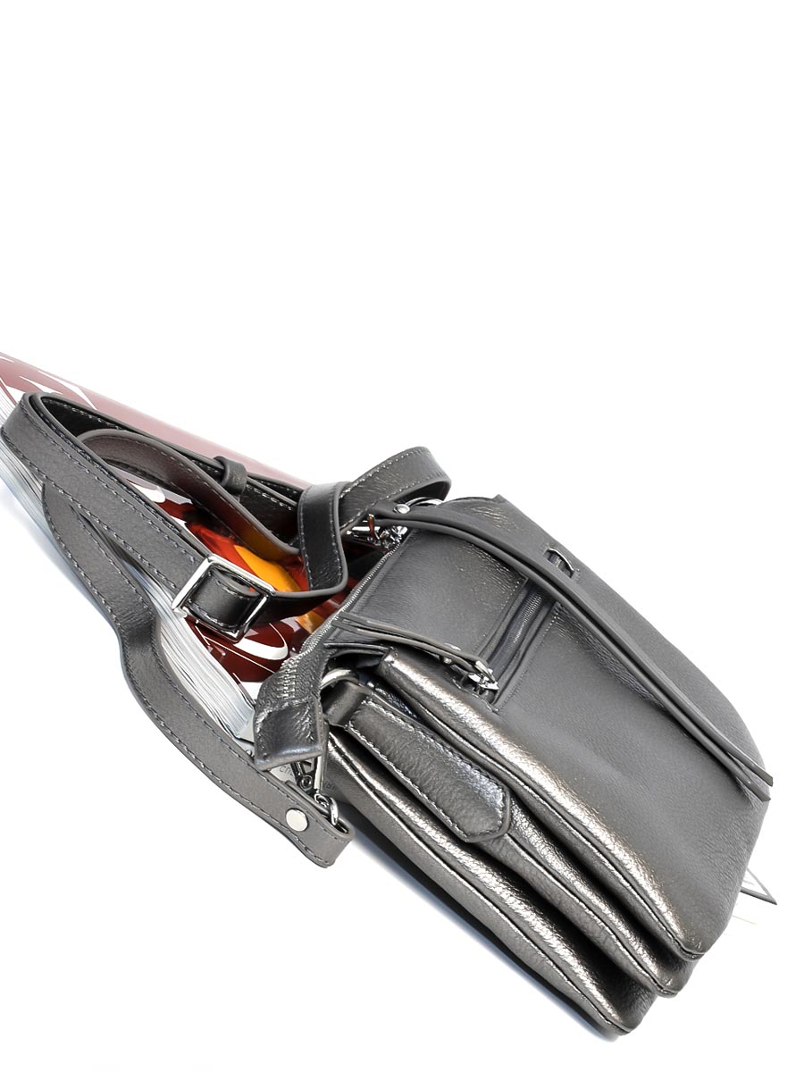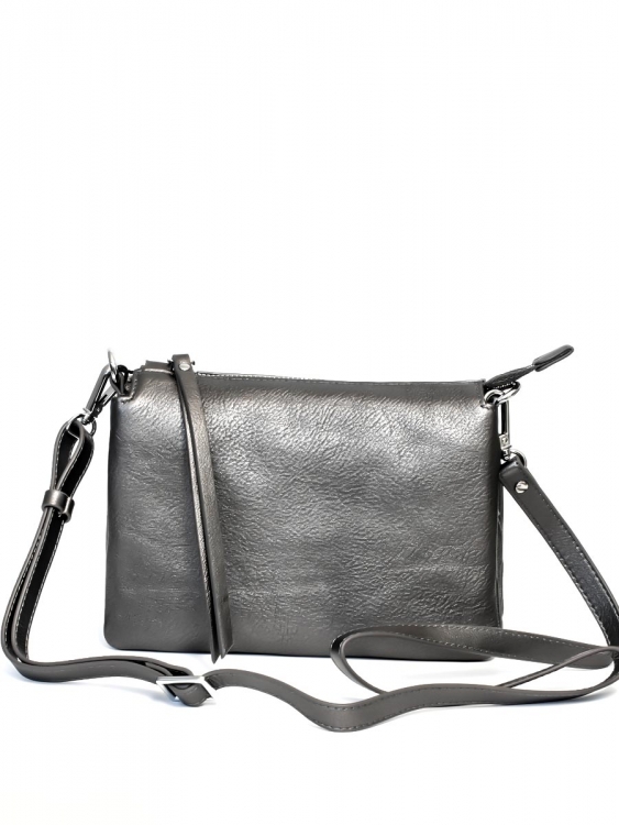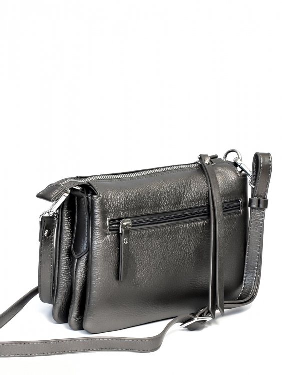 Размер 21,5 х 16 х 6 см. Закрывается на молнию. Внутри три отделения и карман на молнии. На обратной стороне карман на молнии. Сумка оснащена регулируемым по длине наплечным ремешком.