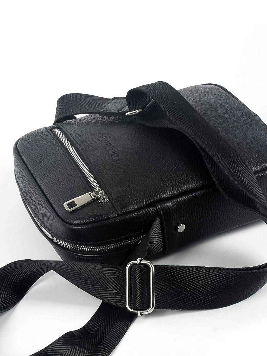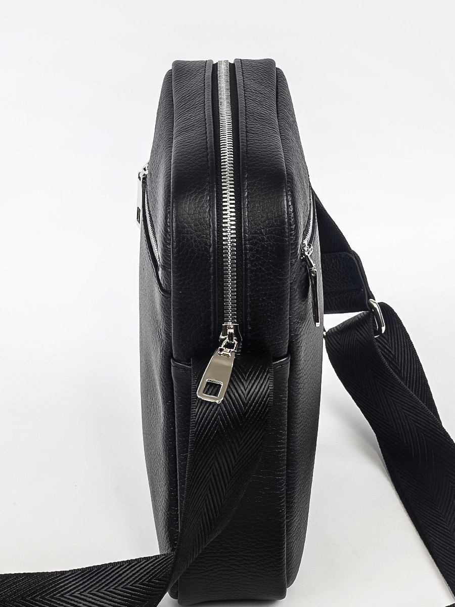Стильная сумка среднего размера (20 х 24 х 6,5 см.) Модель из мягкой натуральной кожи с вместительным отделением на застежке-молнии и двумя внутренними карманами: открытым и на молнии. На лицевой и на обратной сторонах размещены по одному карману на молнии. Оснащена наплечным ремнём из текстильной стропы длиной 150 см. Однотонный плечевой аксессуар идеален для поездок по работе и в отпуск, вечерних прогулок по улицам города, занятий в институте, похода в ресторан. Ее можно брать в путешествия в качестве ручной клади. В наплечной непромокаемой сумке поместятся документы, ключи, портмоне, смартфон, различные мелочи. Модная сумочка из натуральной кожи вписывается в спортивный, офисный, молодежный и деловой стиль. Она станет лучшим подарком взрослым мужчинам и парням подросткам.