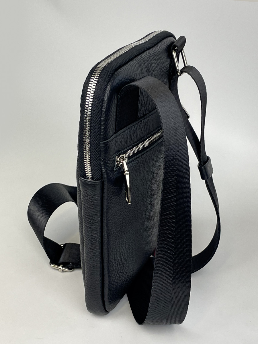Размер 20 х 25 х 3,5 см. Сумочка обладает средними размерами и стильным видом. Модель из мягкой натуральной кожи с отделением на застежке- молнии и внутренним карманом на молнии. На лицевой стороне размещён карман на магнитной кнопке, на обратной стороне- карман на молнии. Оснащена наплечным ремнём из текстильной стропы . Однотонный плечевой аксессуар идеален для поездок по работе и в отпуск, вечерних прогулок по улицам города, занятий в институте, похода в ресторан. Ее можно брать в путешествия в качестве ручной клади. В наплечной непромокаемой сумке поместятся документы, ключи, портмоне, смартфон, различные мелочи. Модная сумочка из натуральной кожи вписывается в спортивный, офисный, молодежный и деловой стиль. Она станет лучшим подарком взрослым мужчинам и парням подросткам.