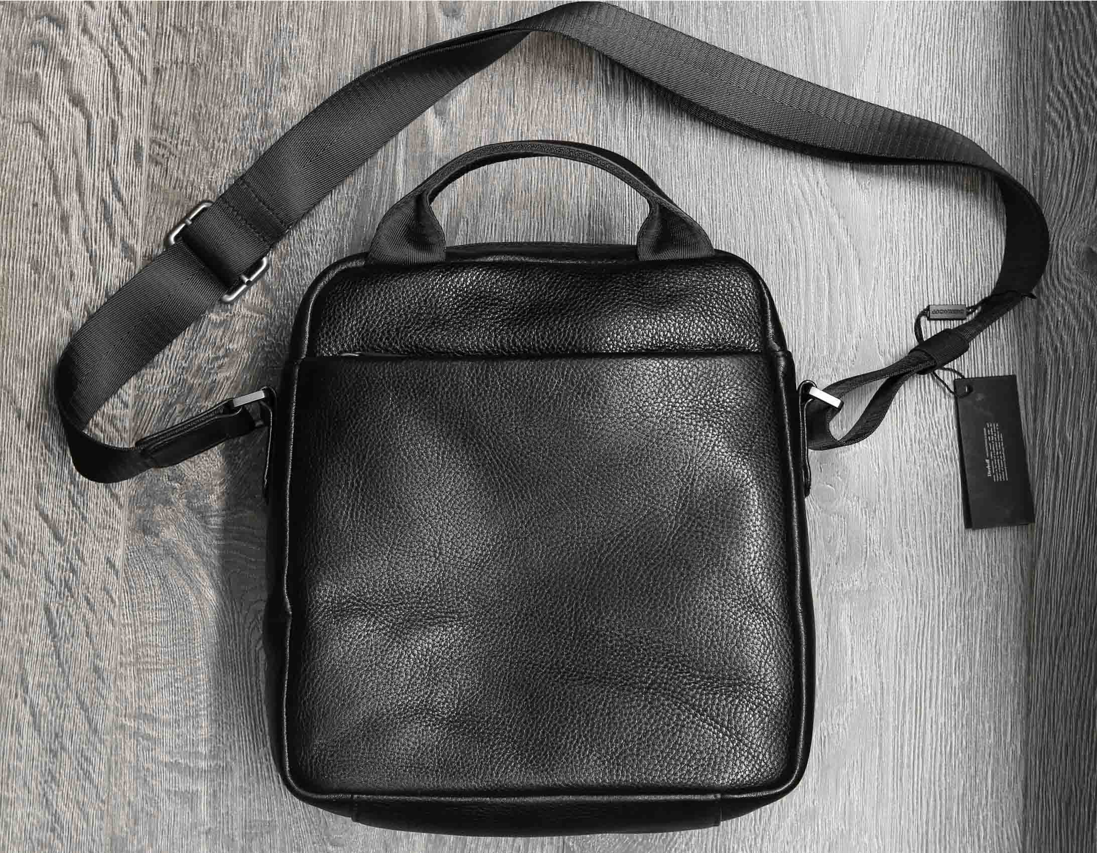 Размер 25 х 27 х 11 см. На лицевой стороне расположены два кармана, закрывающиеся на молнию. Центральное отделение на молнии имеет четыре дополнительных кармана . На обратной стороне расположен карман на молнии. Сумка имеет короткую ручку и текстильный наплечный ремень.