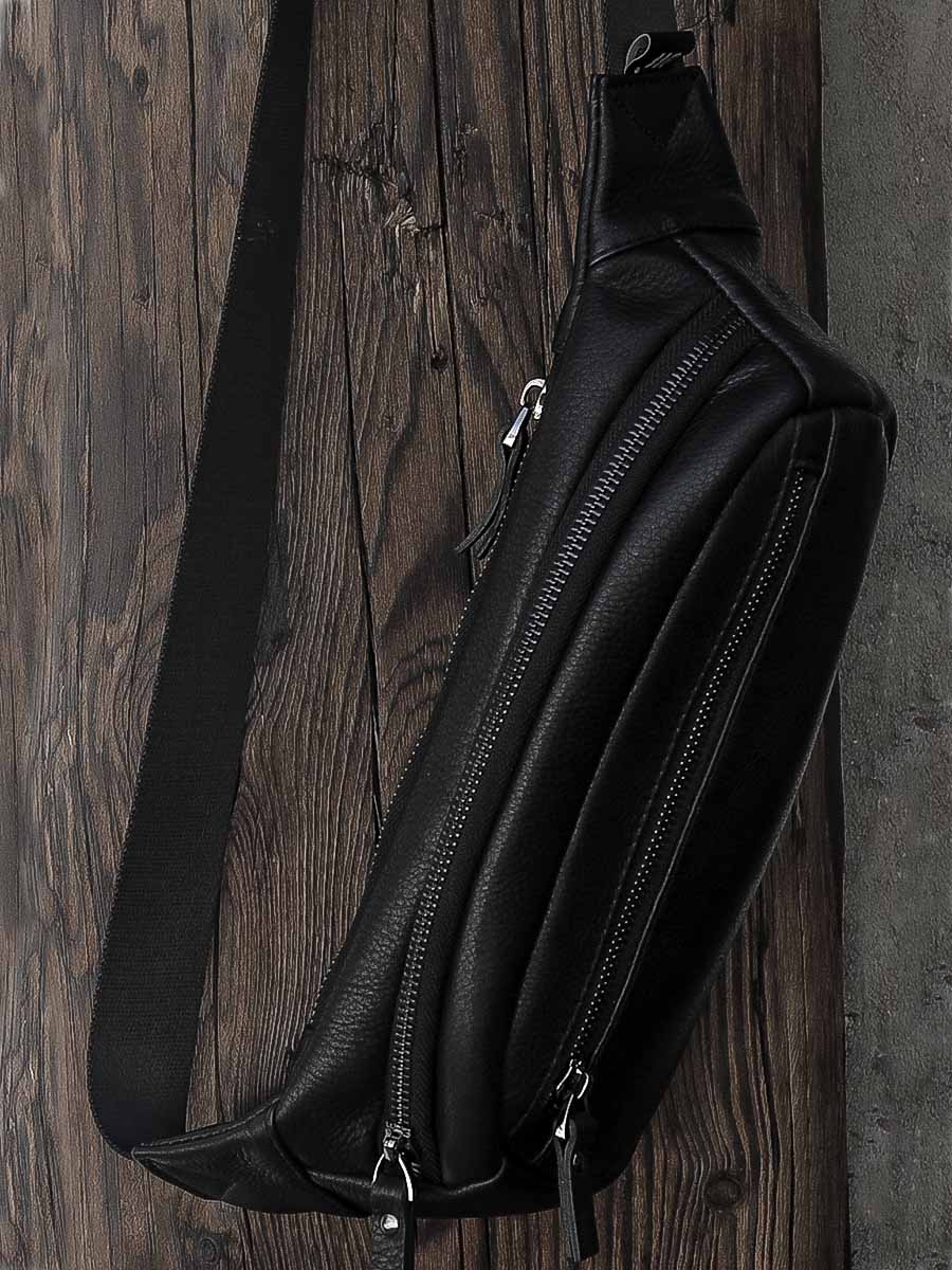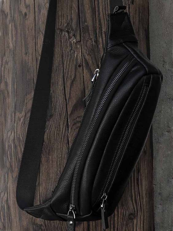 Сумка поясная, натуральная кожа, Дфф, цвет Черный