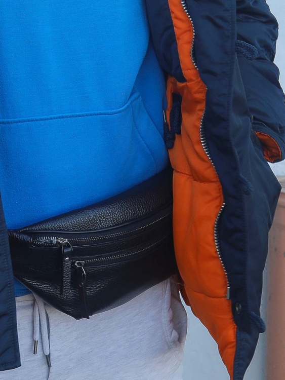 Размер 36 х 13 х 8 см. Удобная поясная сумка из качественной натуральной кожи с текстильной подкладкой внутри. Пояс с застежкой фастекс шириной 4 см. регулируется на обхват от 87 см. до 130 см. Имеет три отделения, закрывающиеся на молнию: большое основное отделение, карман спереди и карман на оборотной стороне. Можно носить и через плечо, и как пояс на талии и бедрах. Подойдёт для женщин и для мужчин.