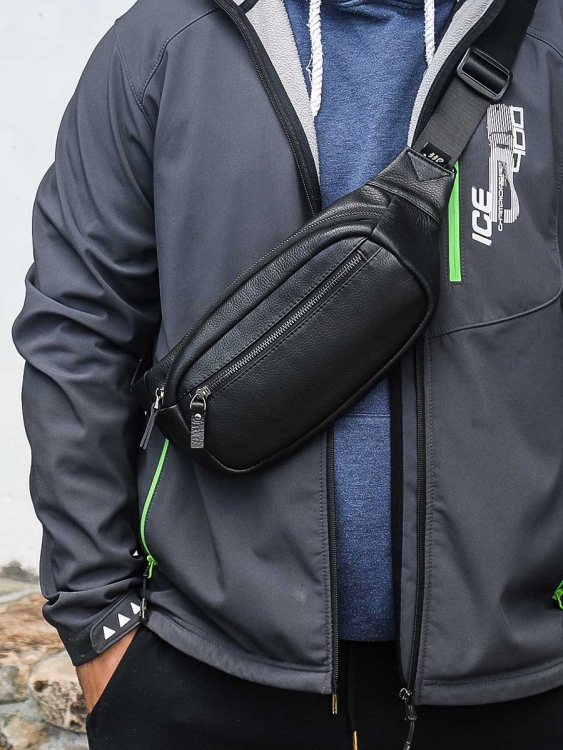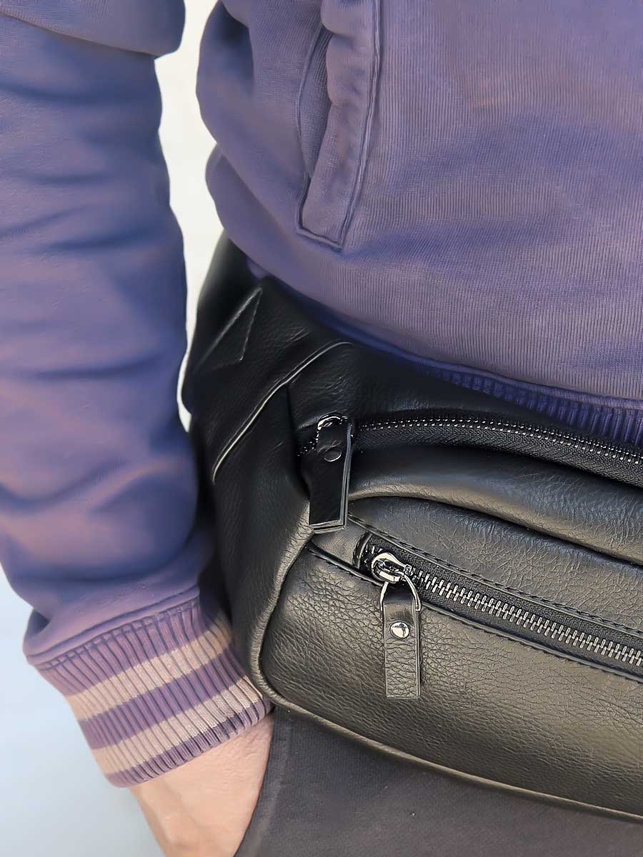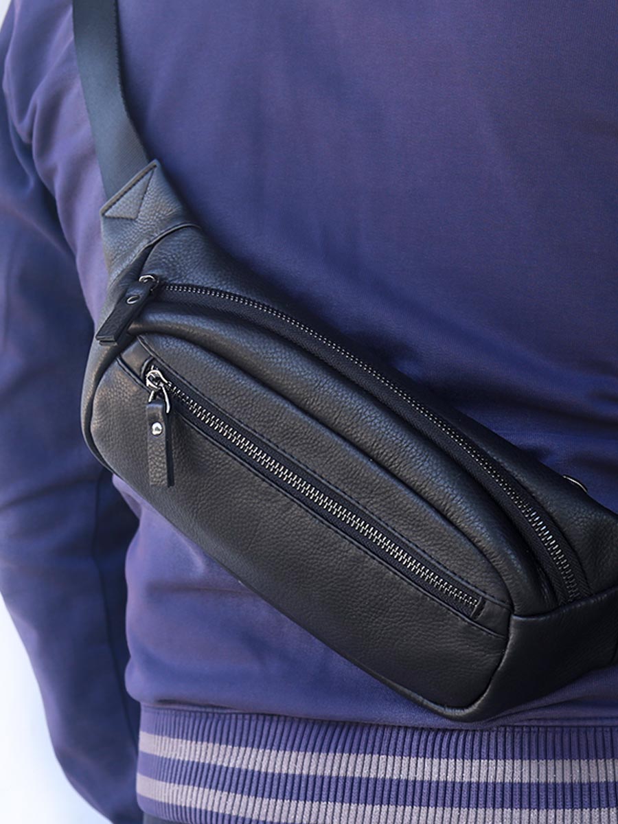 Размер 36 х 13 х 8 см. Удобная поясная сумка из качественной натуральной кожи с текстильной подкладкой внутри. Пояс с застежкой фастекс шириной 4 см. регулируется на обхват от 87 см. до 130 см. Имеет три отделения, закрывающиеся на молнию: большое основное отделение, карман спереди и карман на оборотной стороне. Можно носить и через плечо, и как пояс на талии и бедрах. Подойдёт для женщин и для мужчин.