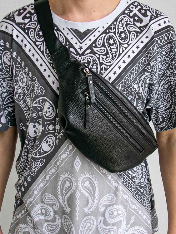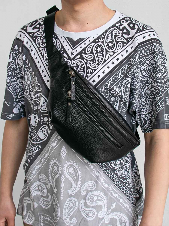 Размер 36 х 13 х 8 см. Удобная поясная сумка из качественной натуральной кожи с текстильной подкладкой внутри. Пояс с застежкой фастекс шириной 4 см. регулируется на обхват от 87 см. до 130 см. Имеет три отделения, закрывающиеся на молнию: большое основное отделение, карман спереди и карман на оборотной стороне. Можно носить и через плечо, и как пояс на талии и бедрах. Подойдёт для женщин и для мужчин.