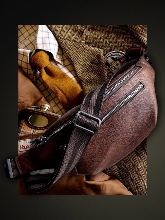 Сумка поясная, натуральная кожа, Дфф, цвет Коричневый