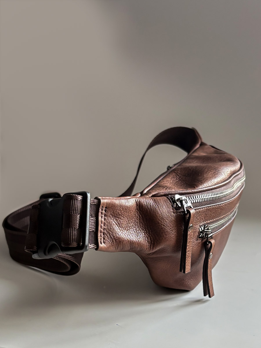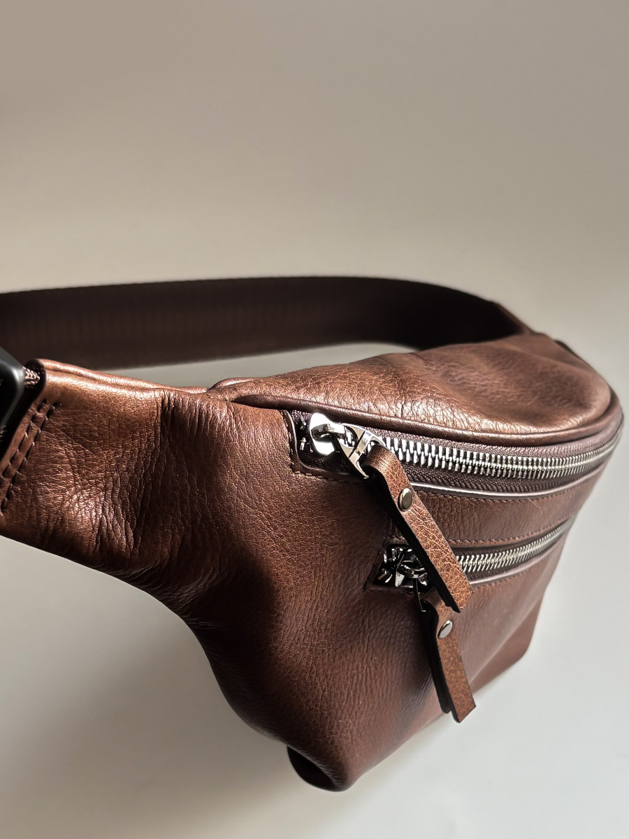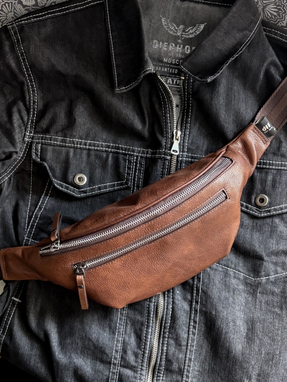 Размер 36 х 13 х 8 см. Удобная поясная сумка из качественной натуральной кожи с текстильной подкладкой внутри. Пояс с застежкой фастекс шириной 4 см. регулируется на обхват от 87 см. до 130 см. Имеет три отделения, закрывающиеся на молнию: большое основное отделение, карман спереди и карман на оборотной стороне. Можно носить и через плечо, и как пояс на талии и бедрах. Подойдёт для женщин и для мужчин.
