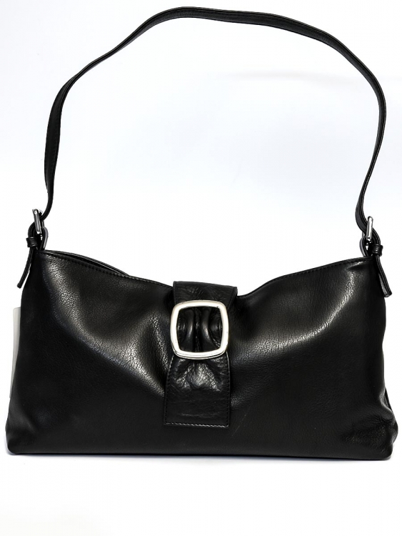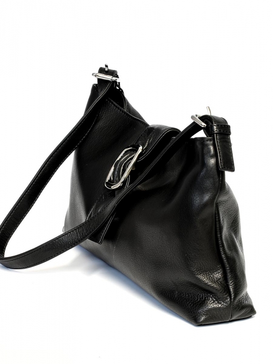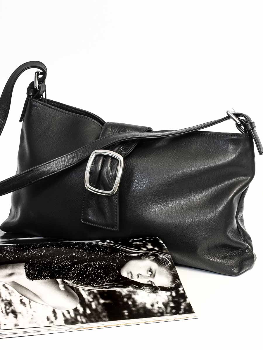 Размер 33 х 19 х 6 см. Закрывается на молнию и дополнительным хлястиком с магнитной кнопкой. Внутри одно отделение и карман на молнии. На обратной стороне карман на молнии. Сумка оснащена наплечным ремешком.