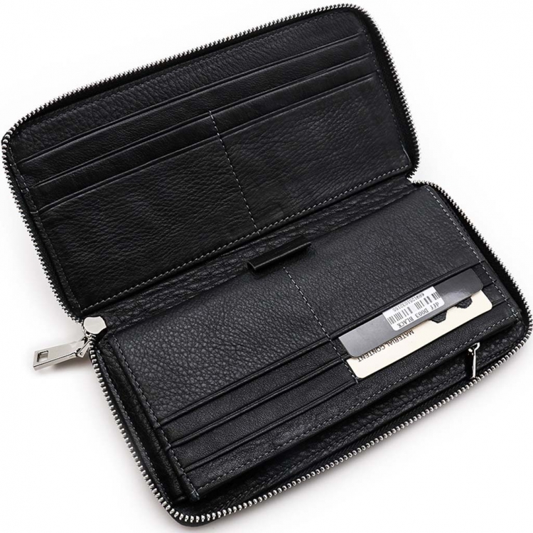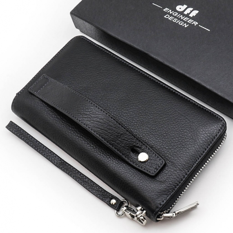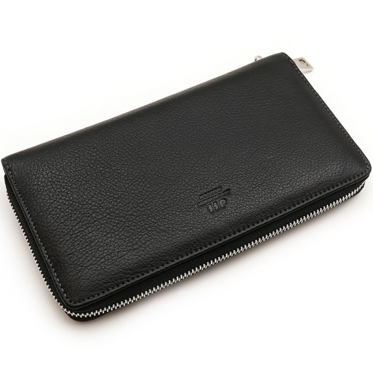 Размер 21,5 х 11,5 х 2,5 см. Мужской бизнес-клатч выполнен из натуральной кожи. Закрывается на молнию. Внутри: четыре кармана для купюр, бумаг и документов, отделение на молнии, 14 отсеков для карточек, два кармашка для СИМ карт, держатель для ручки. Снаружи, на оборотной стороне, захват для руки. Дополнительно к сумке пристёгивается кожаный ремешок.
