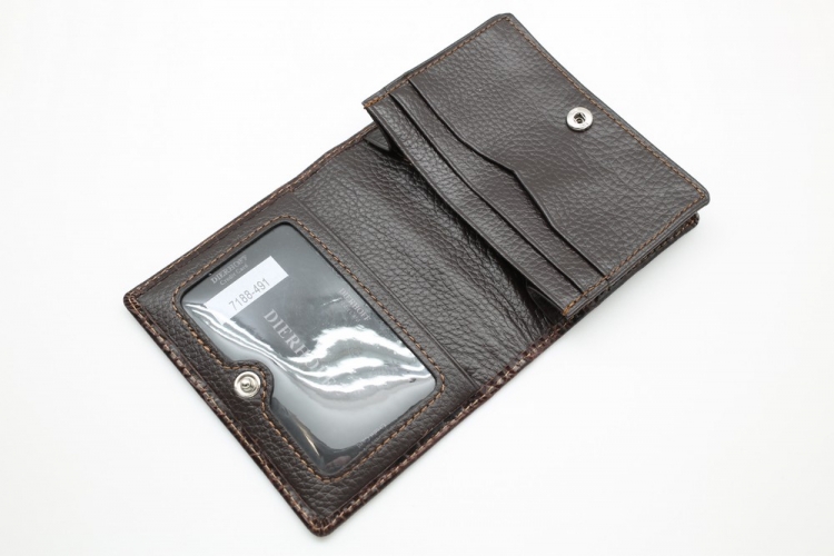 Размер: 11х 8 см. Закрывается на кнопку. Внутри: вместительное отделение и два кармашка для карточек, карман на молнии, прозрачное окошко для фотографии на внутренней стороне клапана.
