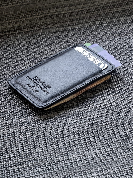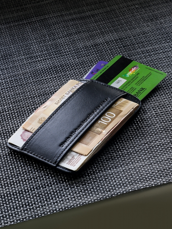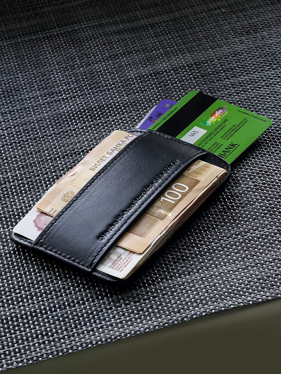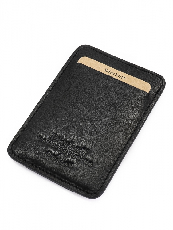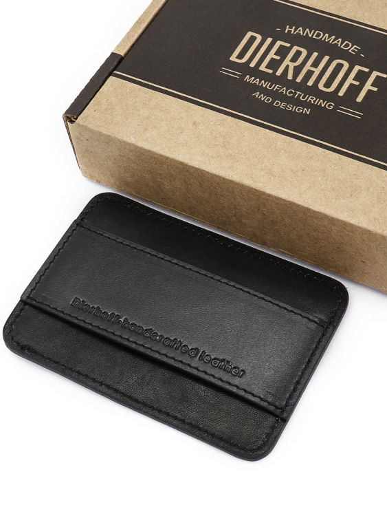 Размер 10 х 7 см. Оригинальное изделие для хранения купюр, визитных, банковских и проксимити карт. Изготовлено с использованием значительной доли ручного труда. Высококачественная кожа держит форму без картона или пластика, неприхотлива, надёжна. Упаковано в подарочную коробку Dierhoff.