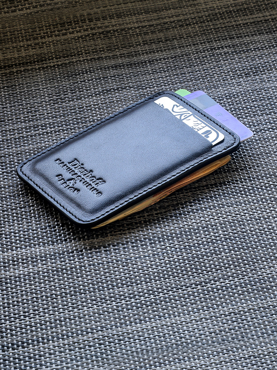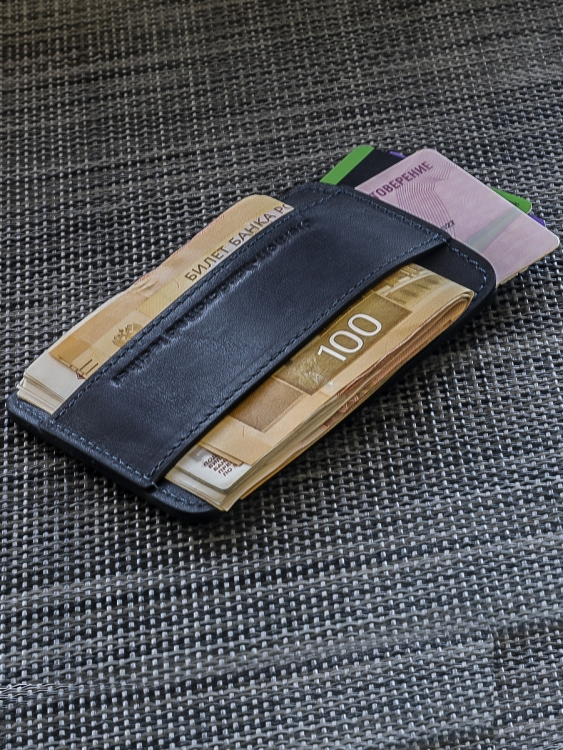 Размер 10 х 7 см. Оригинальное изделие для хранения купюр, визитных, банковских и проксимити карт. Изготовлено с использованием значительной доли ручного труда. Высококачественная кожа держит форму без картона или пластика, неприхотлива, надёжна. Уникальность кожи Crazy Horse в том, что царапины легко удалить, для этого достаточно потереть дефект мягкой тряпочкой или пальцами и он исчезнет. Упаковано в подарочную коробку Dierhoff.