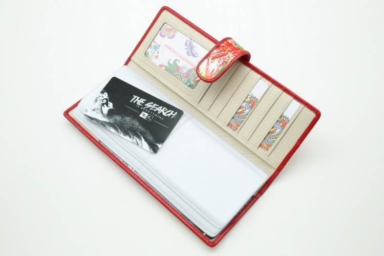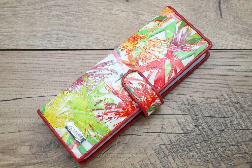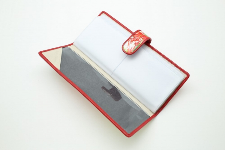 Размер 8.5 х 20 см. Закрывается на хлястик с кнопкой. Внутри 60 прозрачных файлов для визиток.