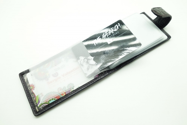 Размер 11 х 6,5 см. Внутри 24 прозрачных файла для визиток и карт.