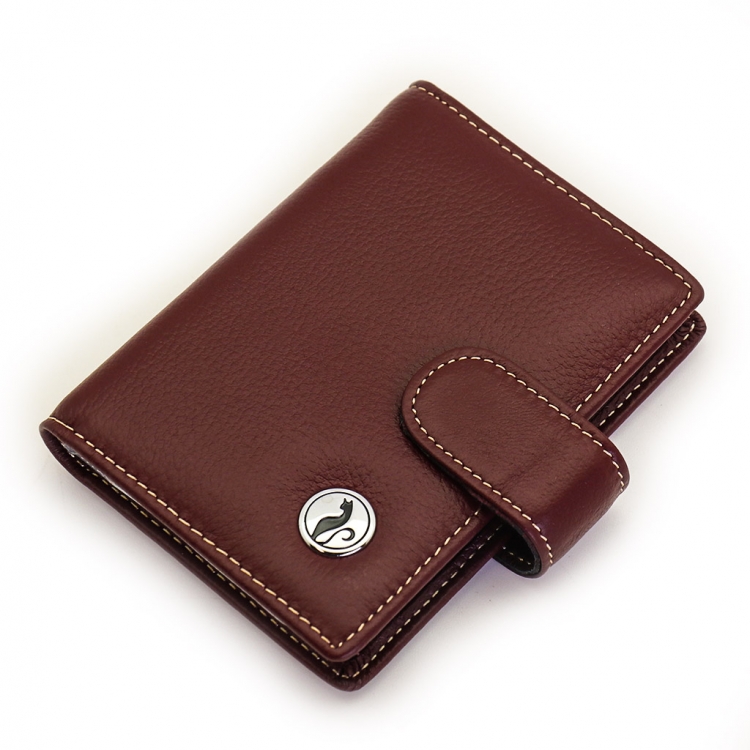 Размер 8 х 10,5 см. Закрывается на хлястик с кнопкой. Внутри: удобные прозрачные пластиковые файлы на 28 карточек, текстильная подкладка и прозрачный захват на левой створке, кожаный захват и кармашек на правой створке.